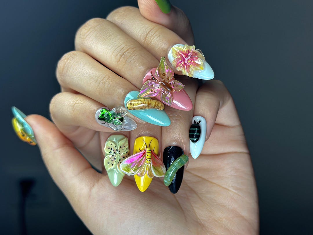3D Insect Garden Press on Nails | Custom Nature-inspired Nail Art With ...