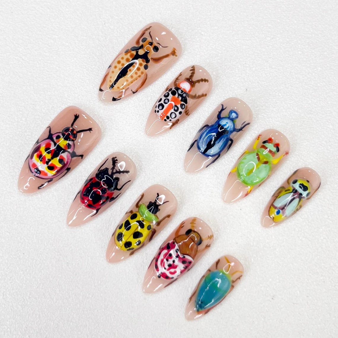 Colorful Bug Press on Nails, Handmade Insect Nail Art With Beetles ...