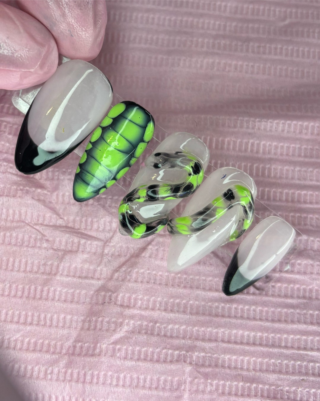 Luxury 3D Snake Press on Nails Reusable Acrylic Nail Art Custom Dark ...