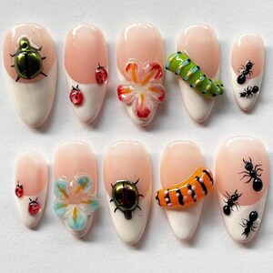 3D Garden Bug Press on Nails, Handmade Nature-inspired Nail Art With ...