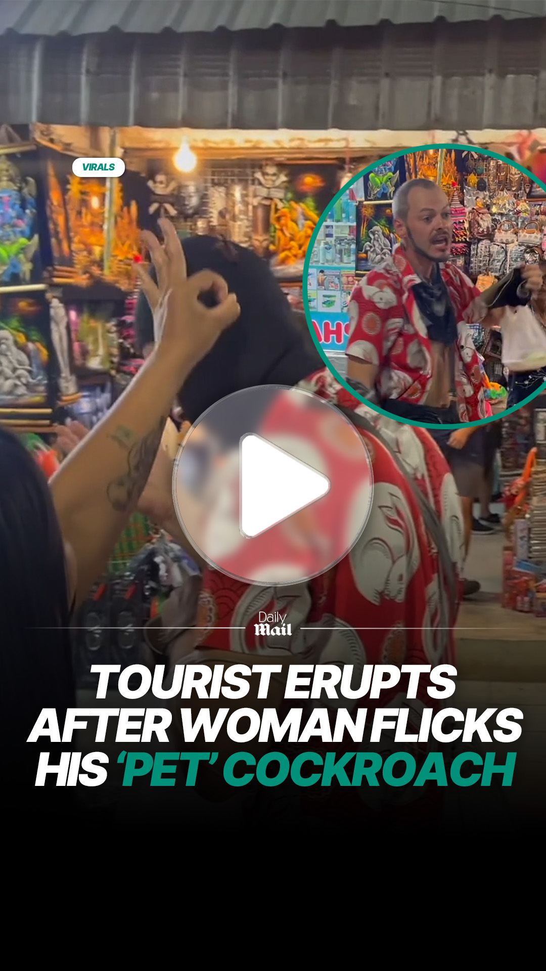 Tourist reacts after cockroach swatted from his head