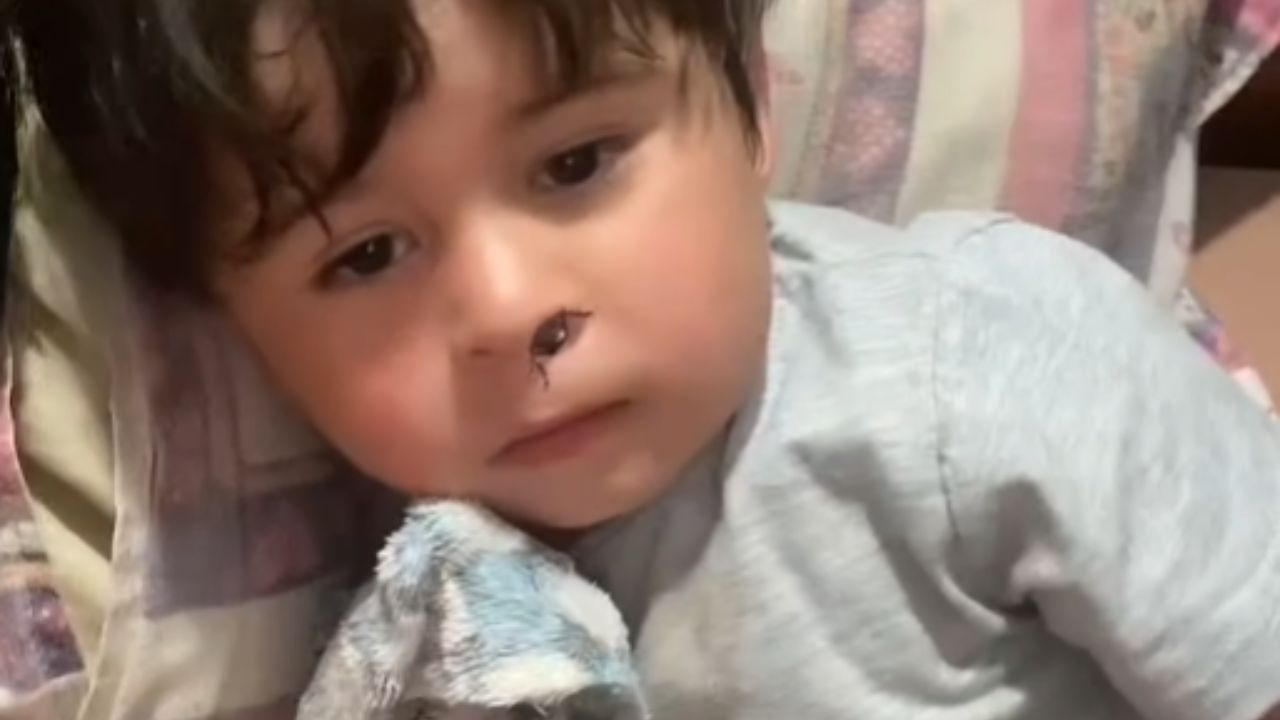 Child shouts when a cockroach appears to crawl inside his nose