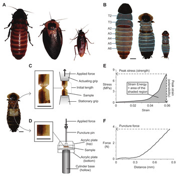 A cockroach climbs over large obstacles. It can bend its trunk downward ...