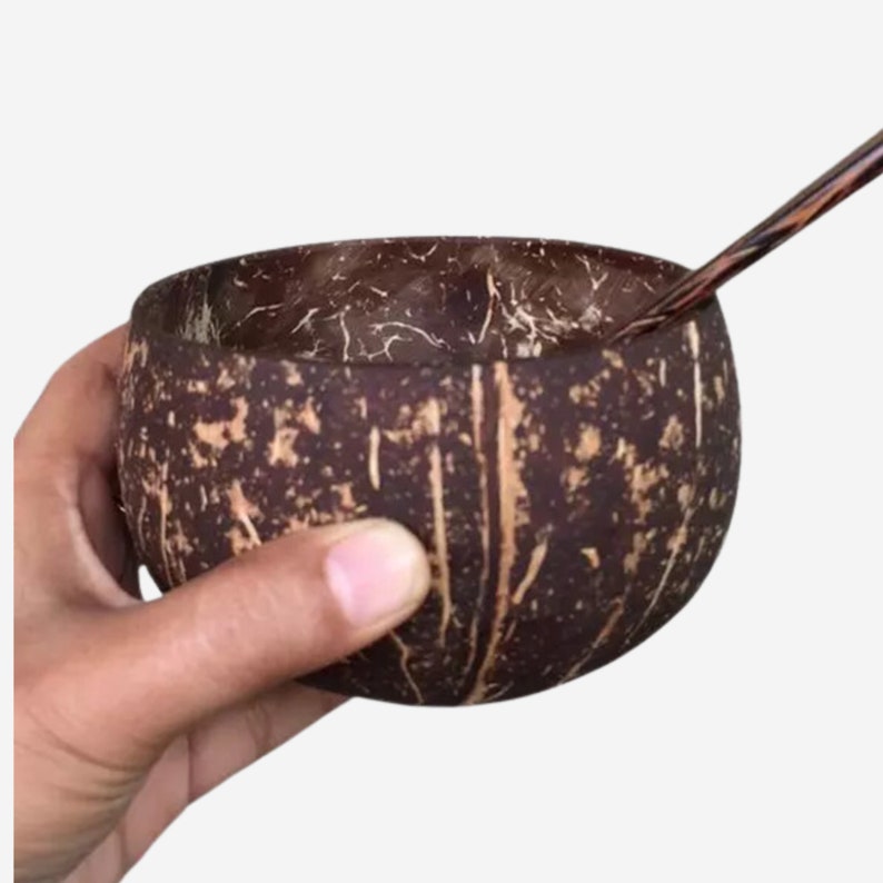 Handcrafted Pot Shaped Coconut Shell Serving Bowl With Wooden Spoon ...