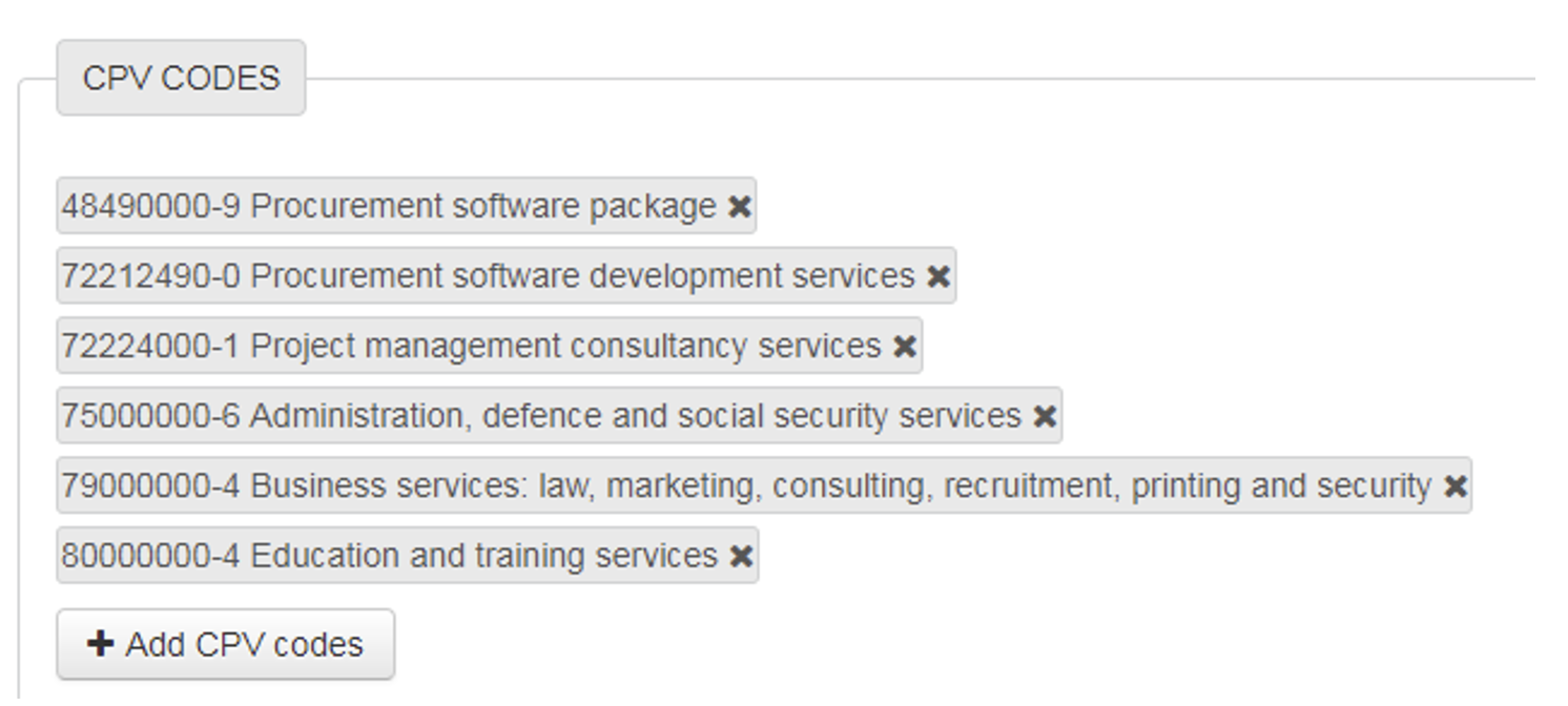 CPV Codes Entry