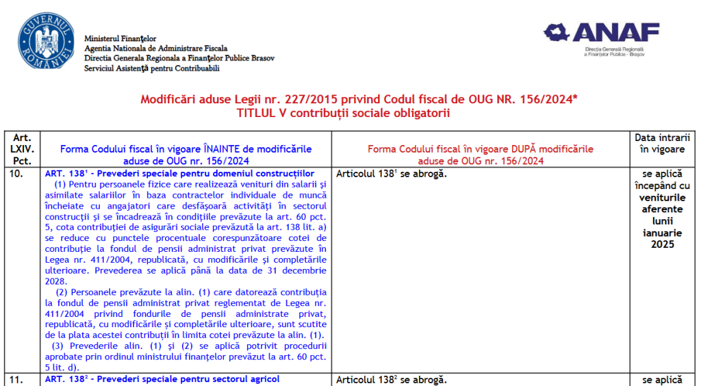 ANAF (oficial 2025) – modificări aduse Legii nr. 227/2015 privind Codul ...
