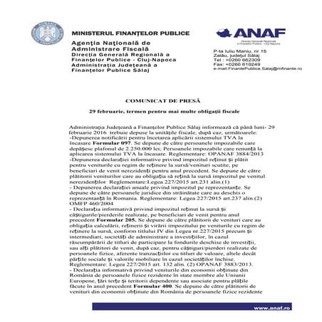 ANAF – modificări aduse Legii nr. 227/2015 privind Codul fiscal de ...