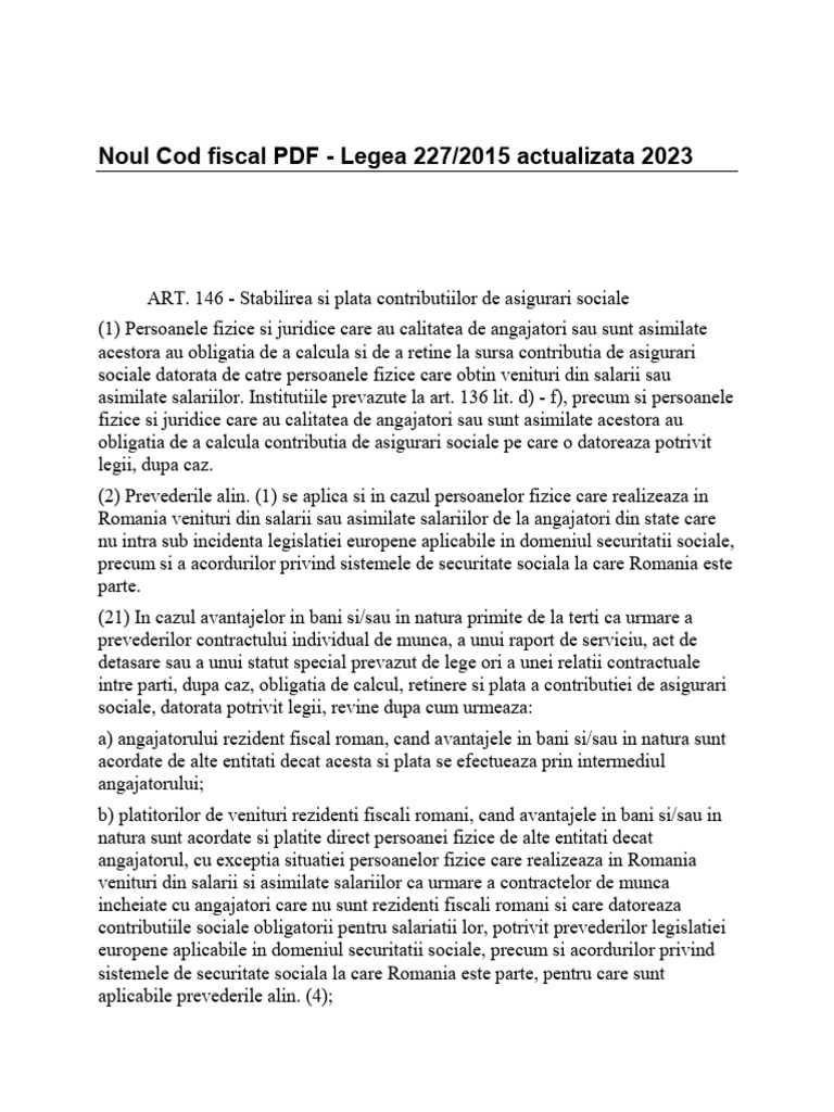 Noul Cod fiscal PDF - Legea 227/2015 actualizata 2024