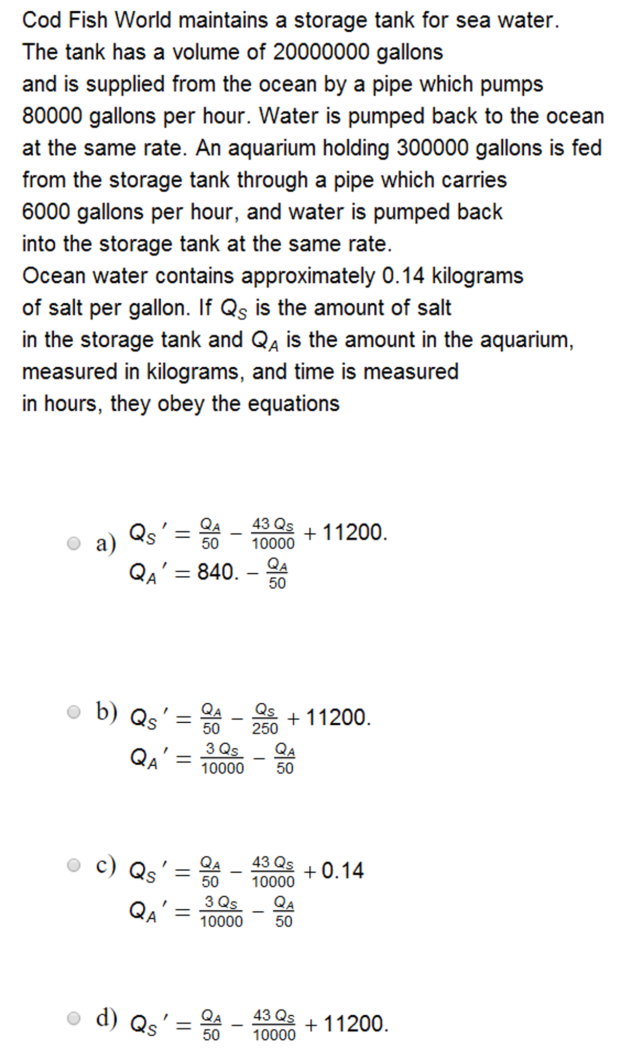 Solved Cod Fish World maintains a storage tank for sea | Chegg.com