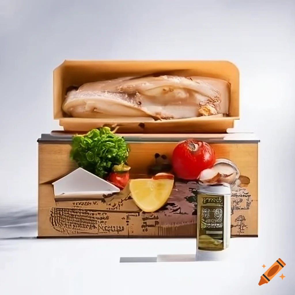 Gastronomic kit box with codfish outdoors on Craiyon