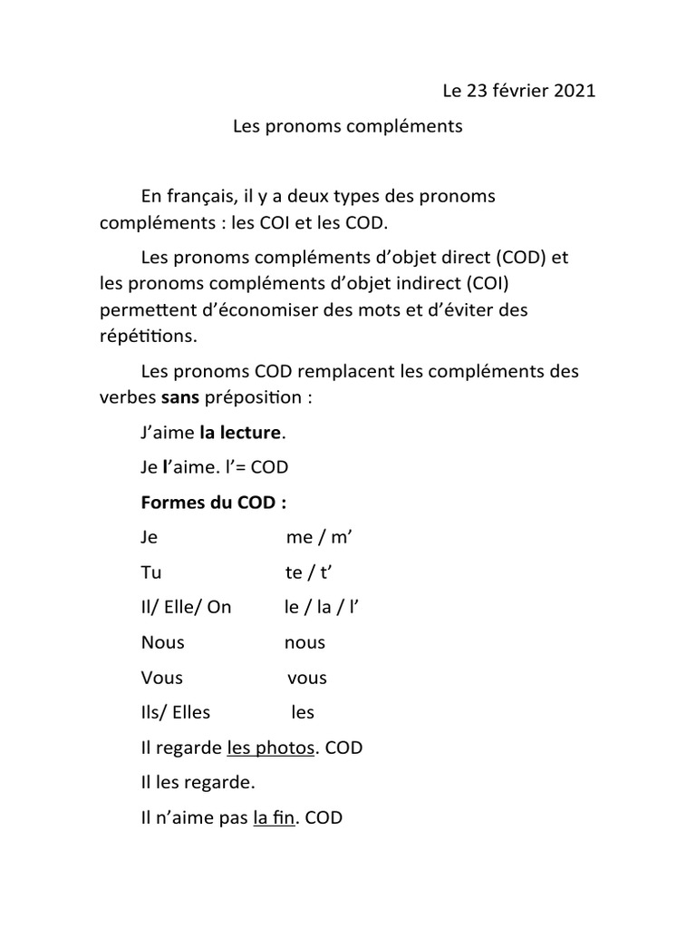Compléments COD et COI pratique de l…: Français FLE fiches pedagogiques ...