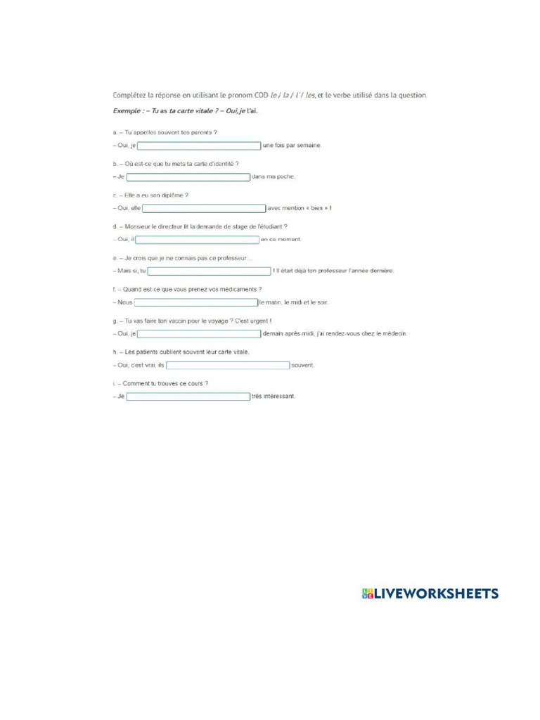 Pratiquez les COD et COI - cod and coi in french exercises worksheet ...