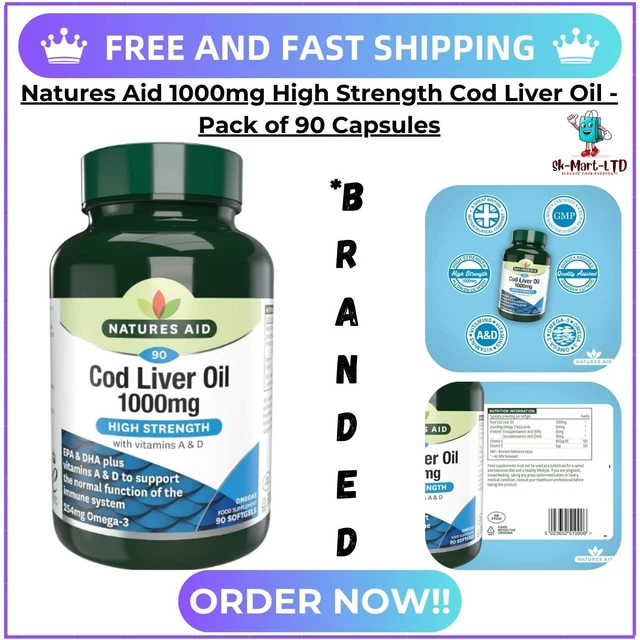 NATURES AID 1000MG High Strength Cod Liver Oil - Pack of 90 Capsules £7 ...