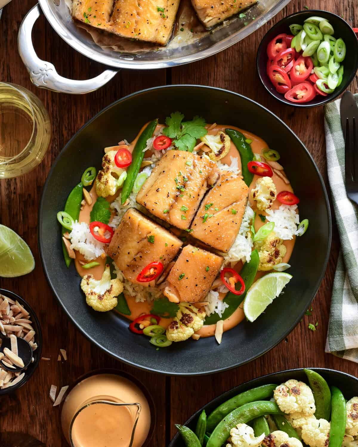 Baked Black Cod with Thai Peanut Curry Sauce & Crispy Rice - Zimmy's Nook