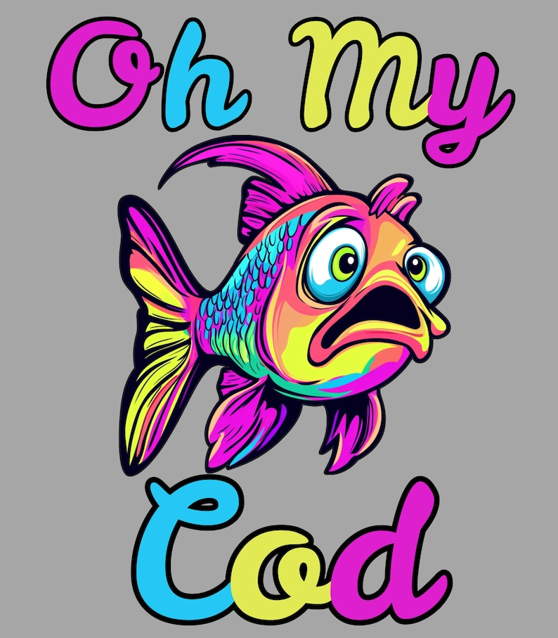 Oh My Cod Funny Png, Fish Png, Neon Fish Png, Retro Fish Png, Vintage ...