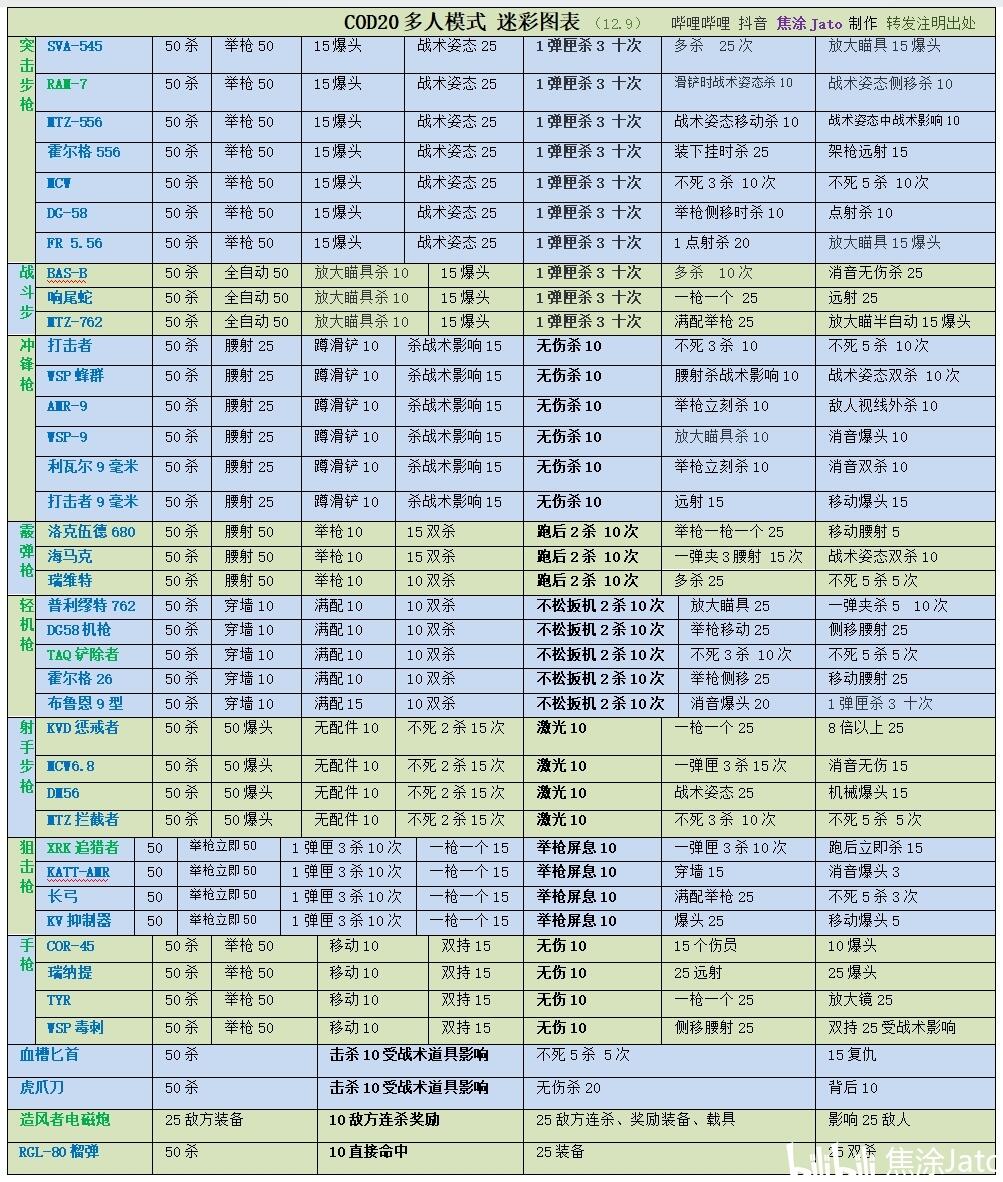COD20 多人模式/丧尸模式 迷彩图表附配枪(12.20更新) - 哔哩哔哩