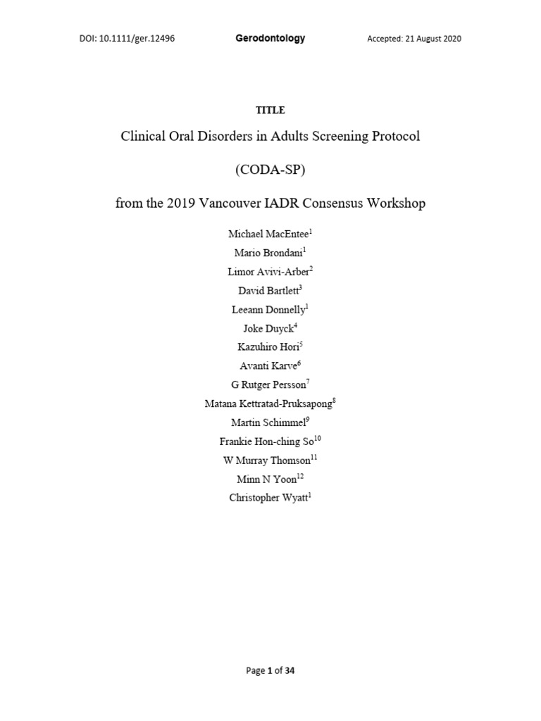 CODA-SP: Adult Oral Disorder Screening | PDF | Periodontology ...