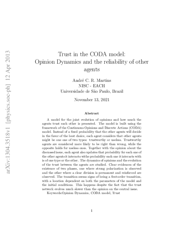(PDF) Trust in the CODA model: Opinion dynamics and the reliability of ...