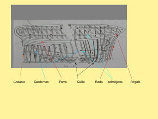 Estructura de un barco: cuadernas, baos, roda y codaste