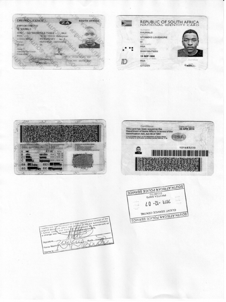 Code 14 Licence and ID of Ntobeko | PDF