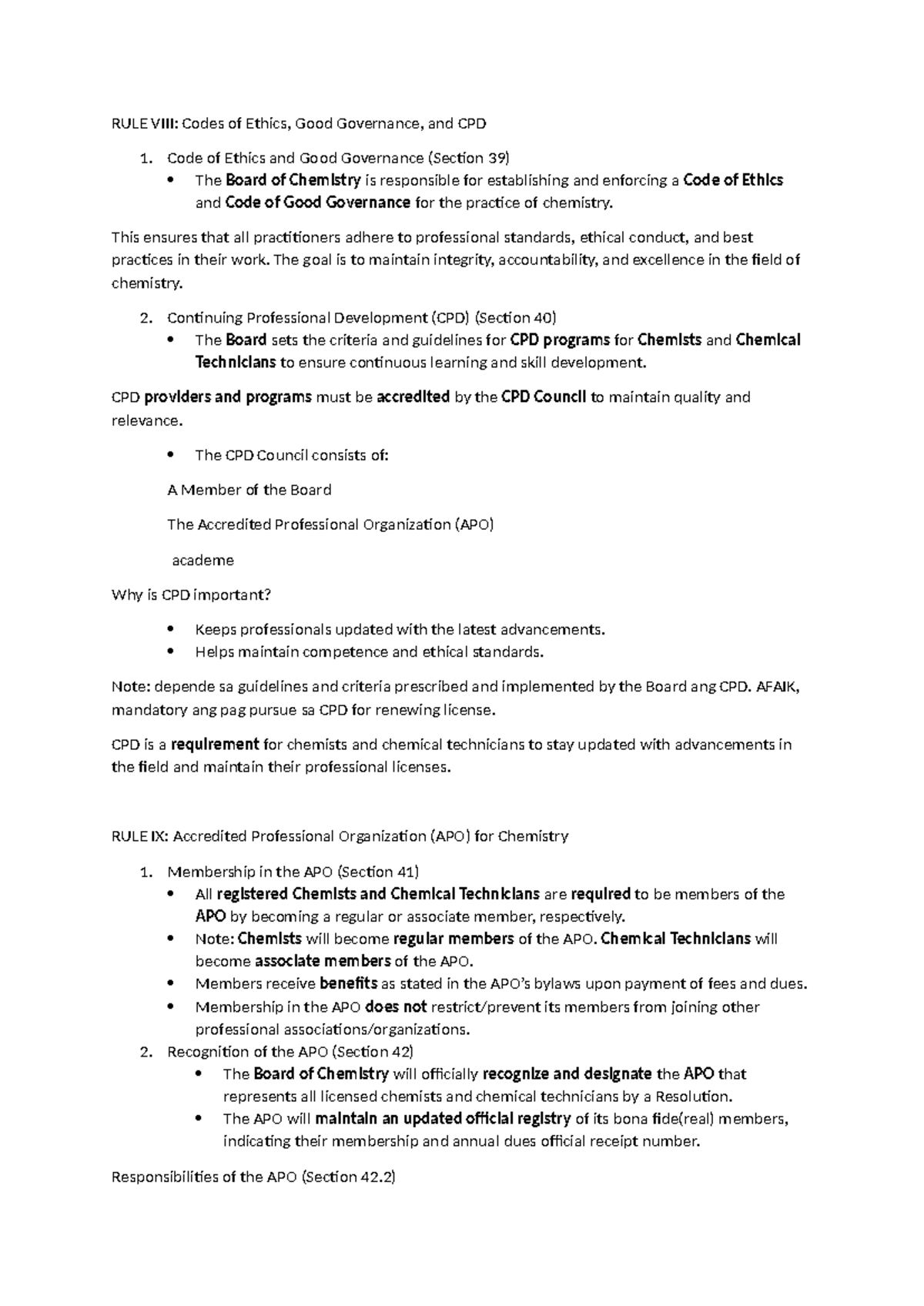 RULE Codes of Ethics, Good Governance, and CPD for Chemists - Studocu