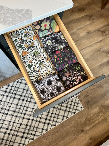 Black and White Anenomes | two sided microfiber tea towels – ellembeegift