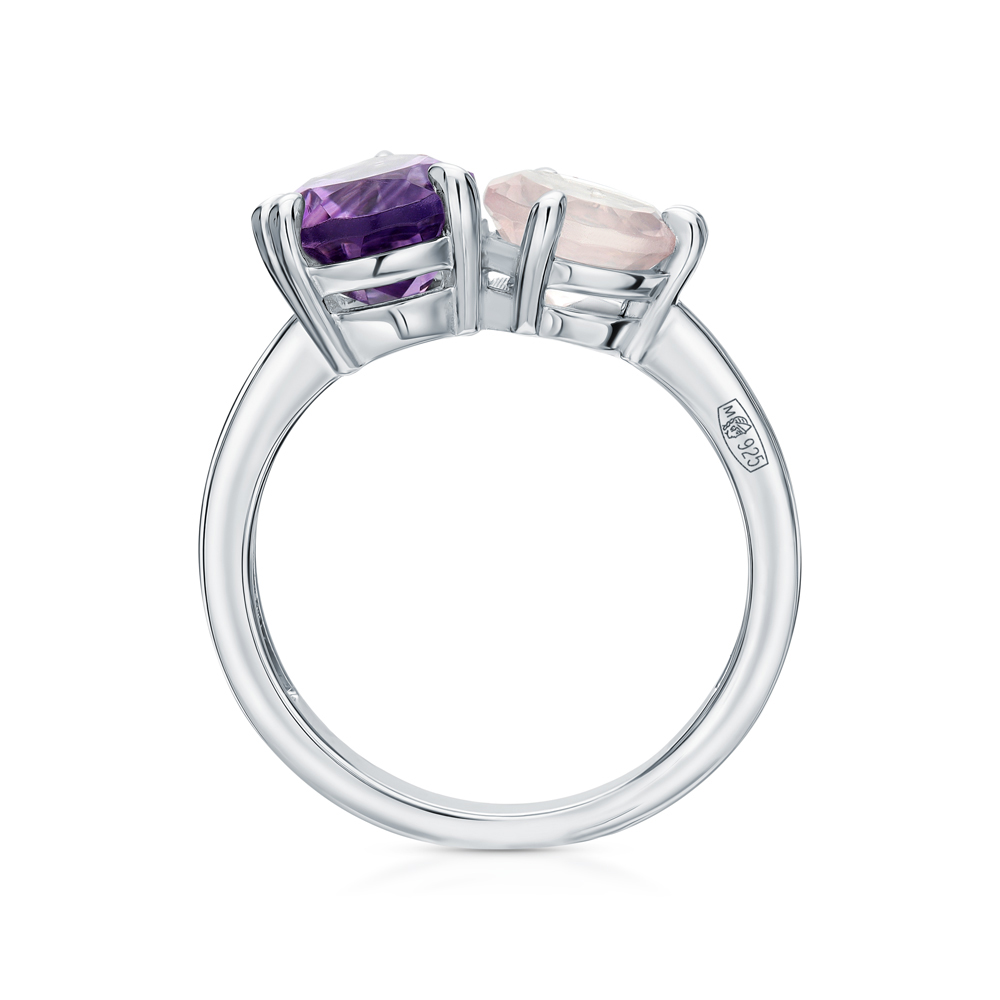 Серебряное кольцо с кварцами природными и аметистами природными BASTET ...