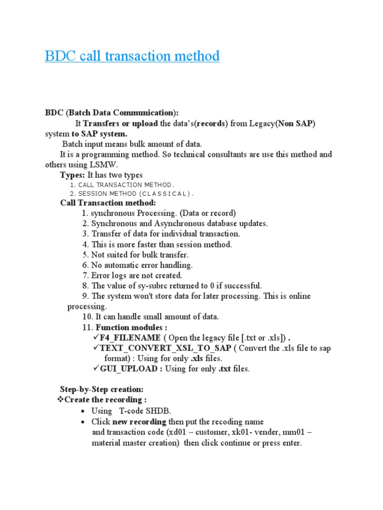 BDC Call Transaction Method Guide | PDF | Microsoft Excel | Computer ...