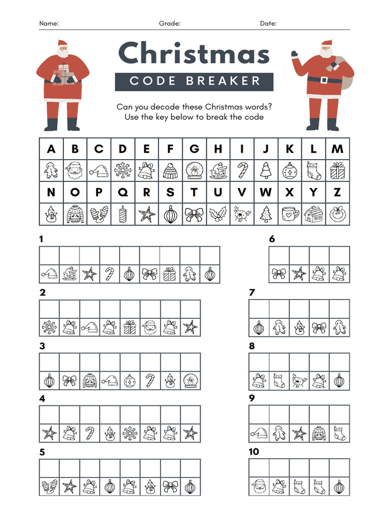 Break Santa's Code – Code Breaker Worksheet – Miniature Masterminds