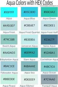 Aqua Color - 150 Shades with Names, Hex Codes, and Examples - Drawing Blog