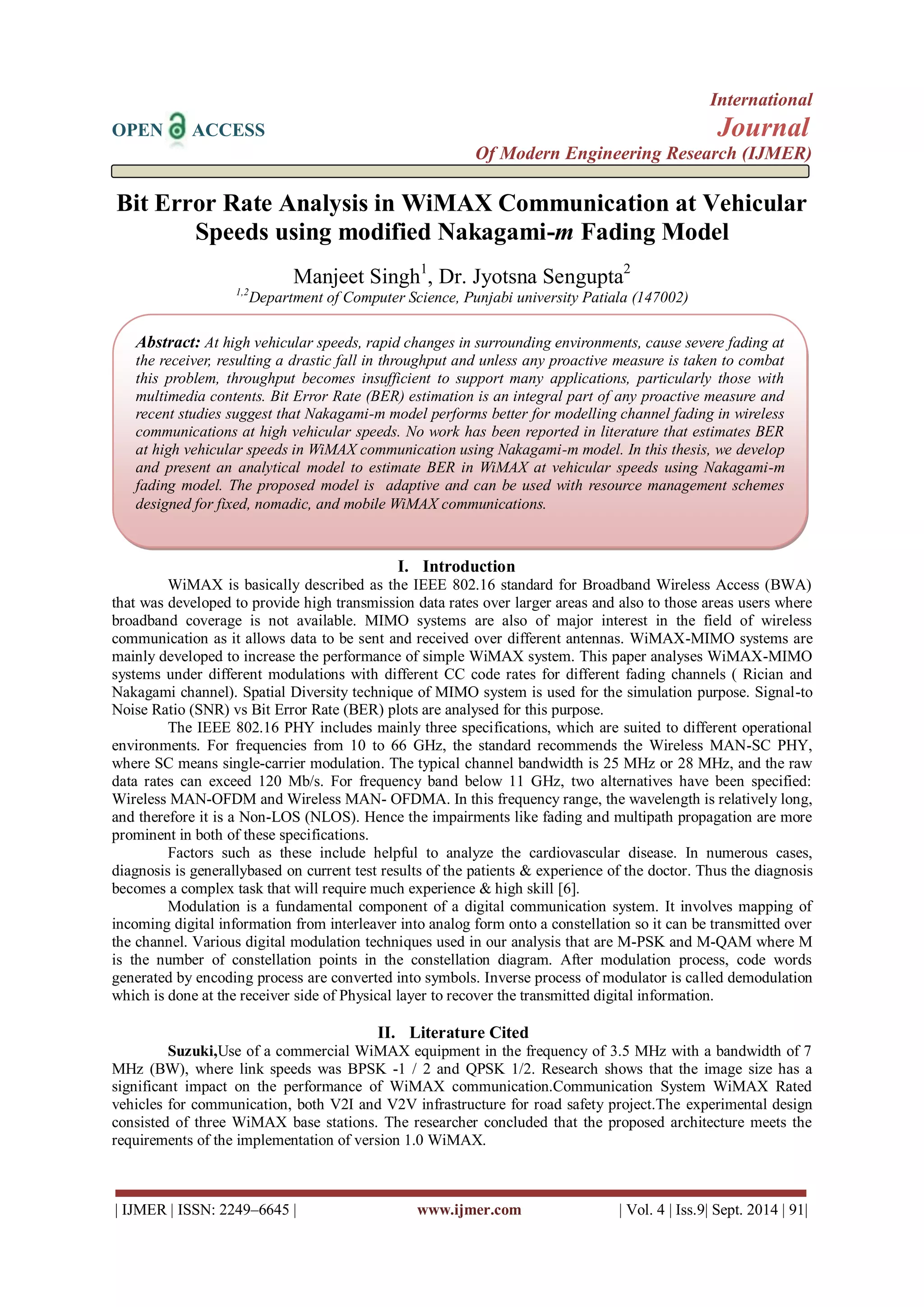 Bit Error Rate Analysis in WiMAX Communication at Vehicular Speeds ...