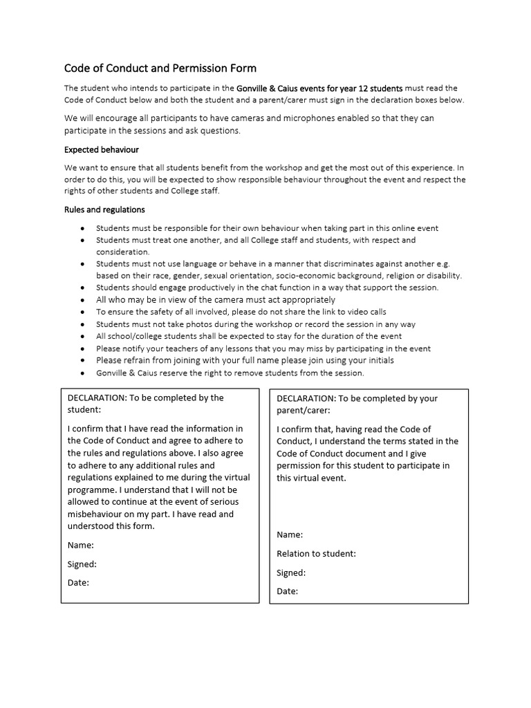 Student Code of Conduct and Permission Form Y12 2023 24 | PDF | Human ...