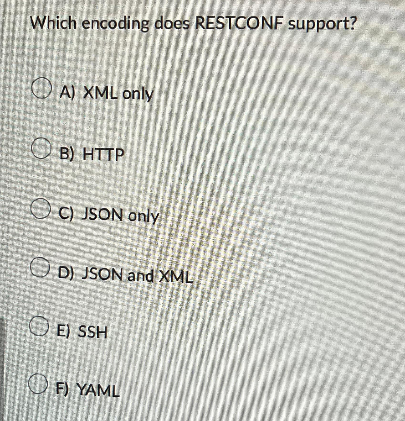 Solved Which encoding does RESTCONF support?A) XML onlyB) | Chegg.com