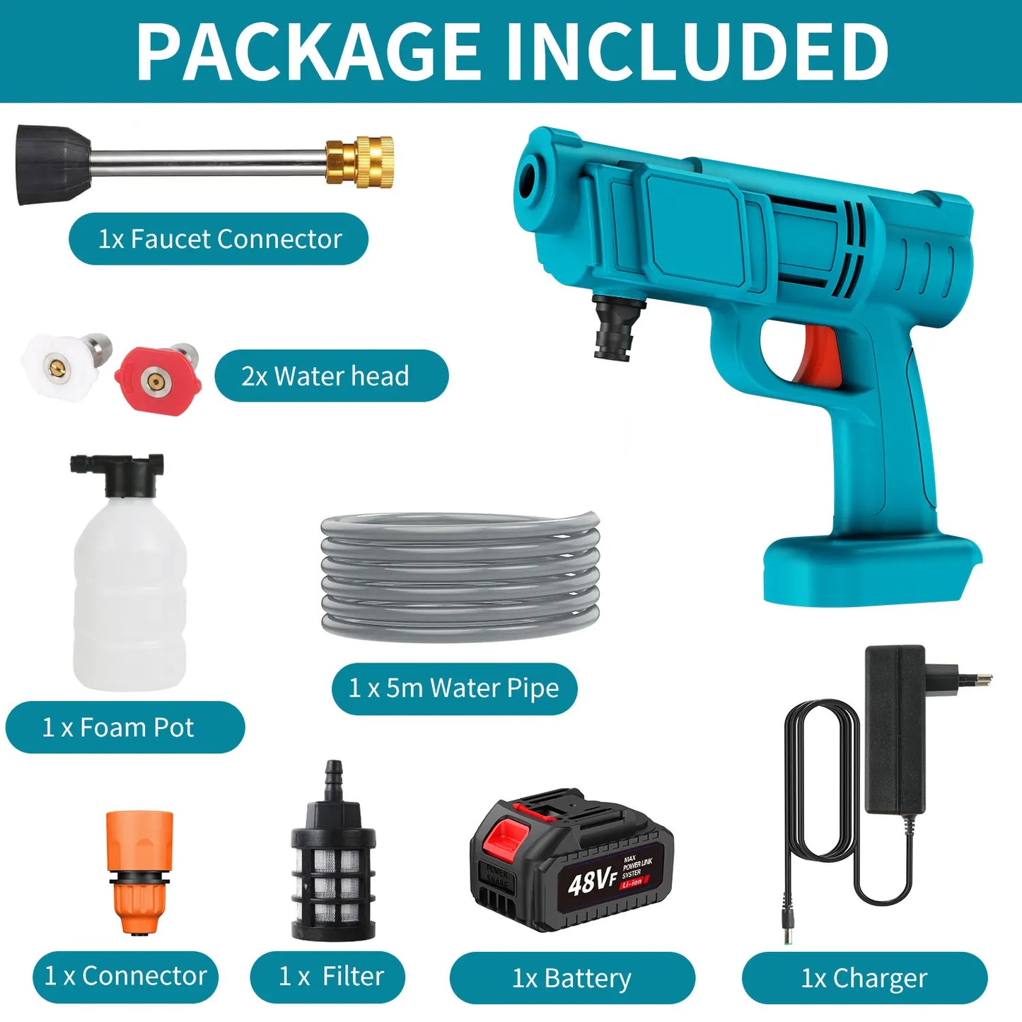 Cordless Pressure Washer 200BAR 2500W 21V 12000mAh Water Gun – laurichshop
