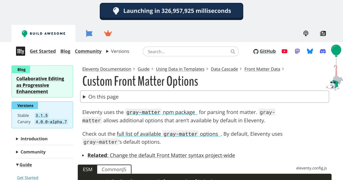 Custom Front Matter — Eleventy