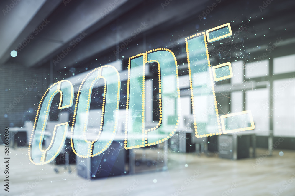 Premium Photo | Code word hologram on blurry contemporary office ...
