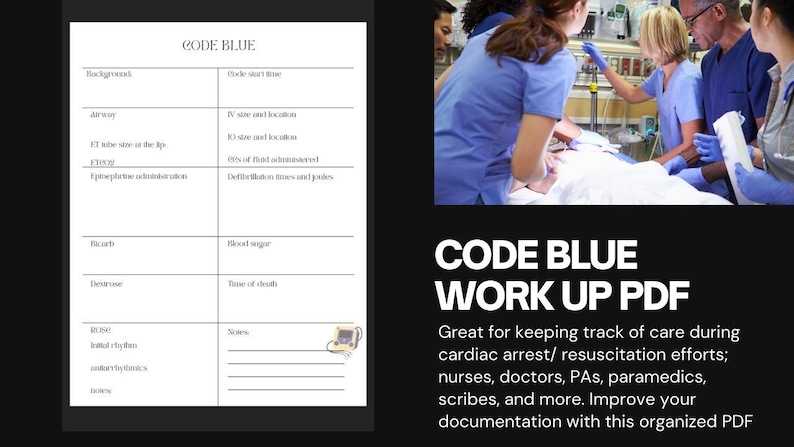 Code Blue Quick Reference Sheet for Nurses, Nursing Students - Etsy ...