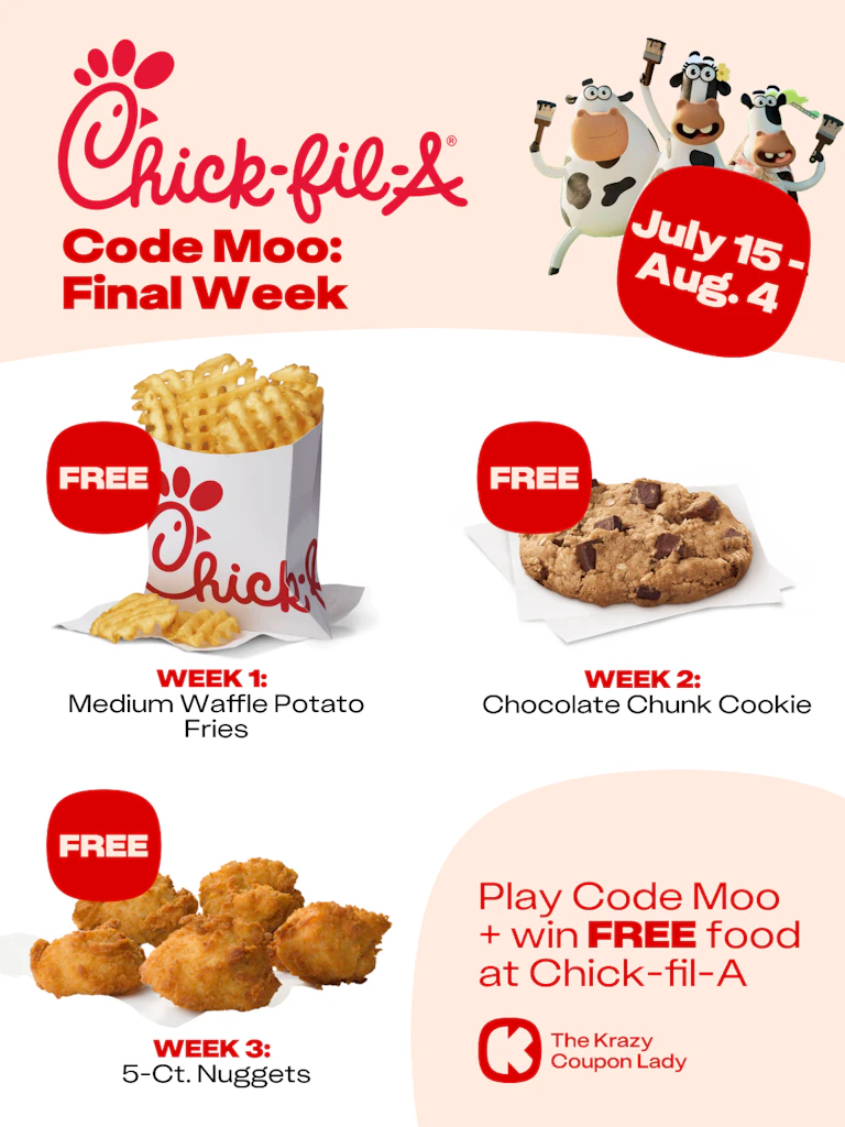 LAST WEEK: Chick-Fil-A Freebies when you play Code Moo!