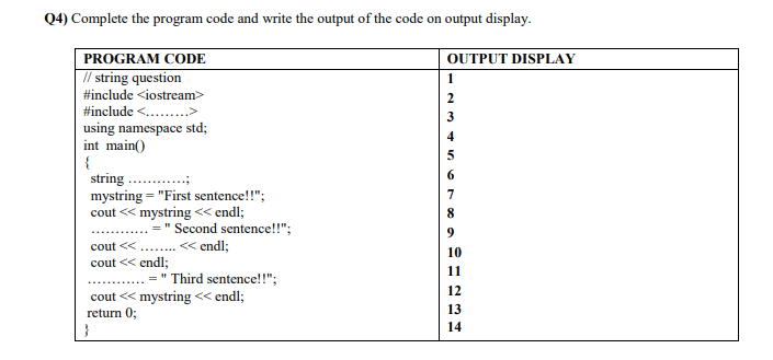 Solved (4) Complete the program code and write the output of | Chegg.com