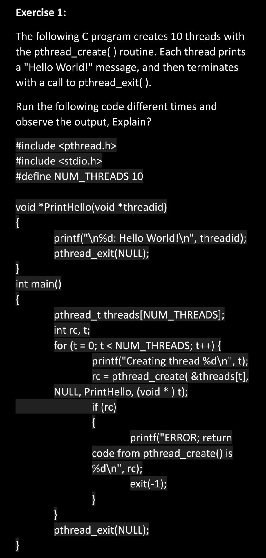 Solved Exercise 1: The following C program creates 10 | Chegg.com