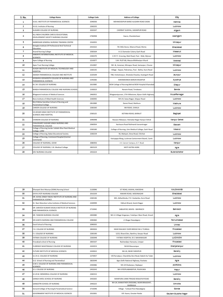 B.SC Nursing College Code List Session 2020-21 | PDF | Social Programs ...