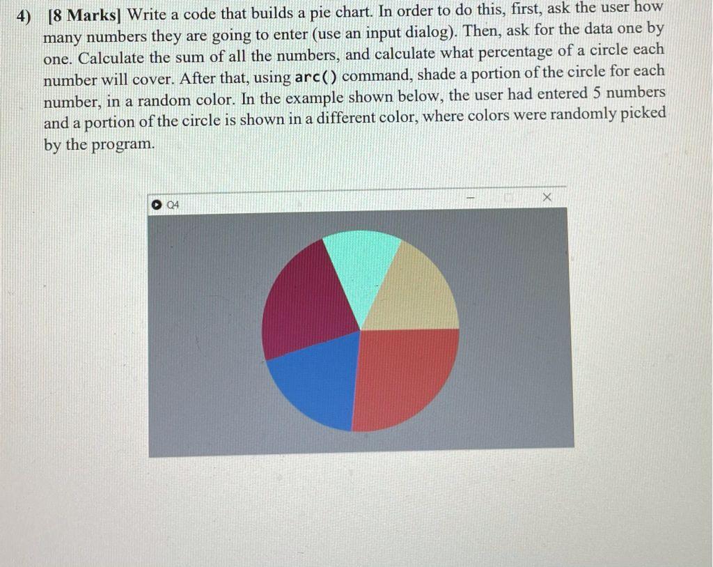 4) [8 Marks] Write a code that builds a pie chart. In | Chegg.com