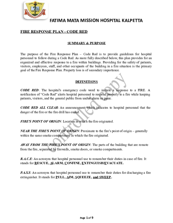 Code Red Emergency Procedures in Hospitals | PDF | Emergency Evacuation ...