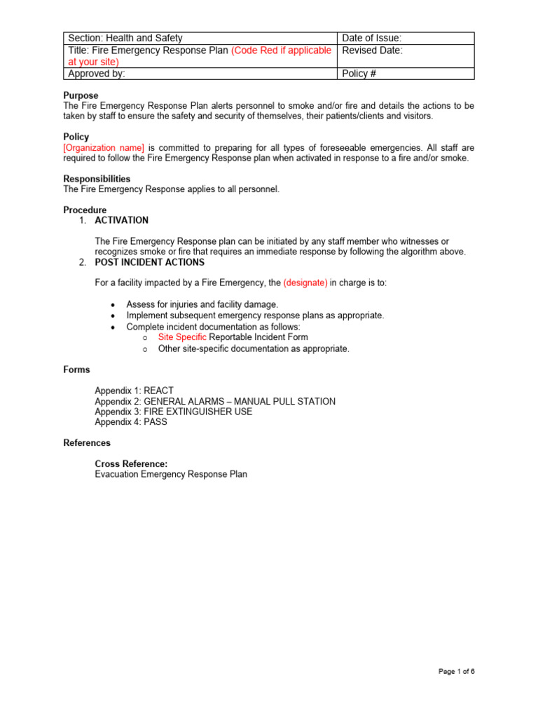 Fire Code Red PolicyProcedure Template | PDF | Emergency Evacuation ...