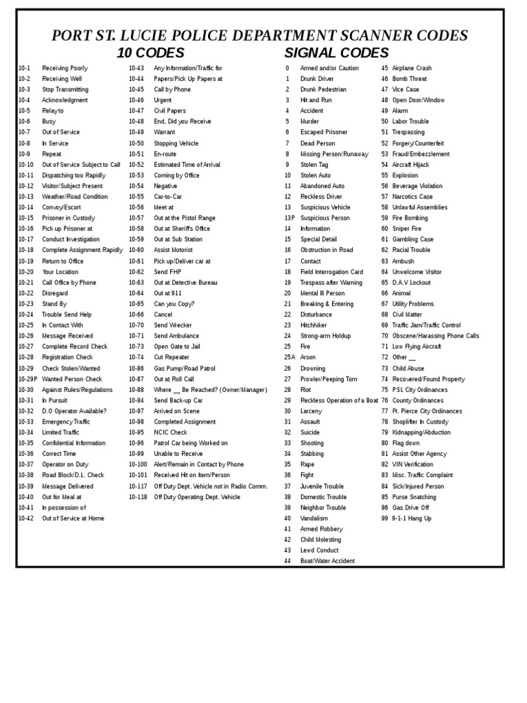 PSL 10 Signal CODES | Traffic | Crime & Violence