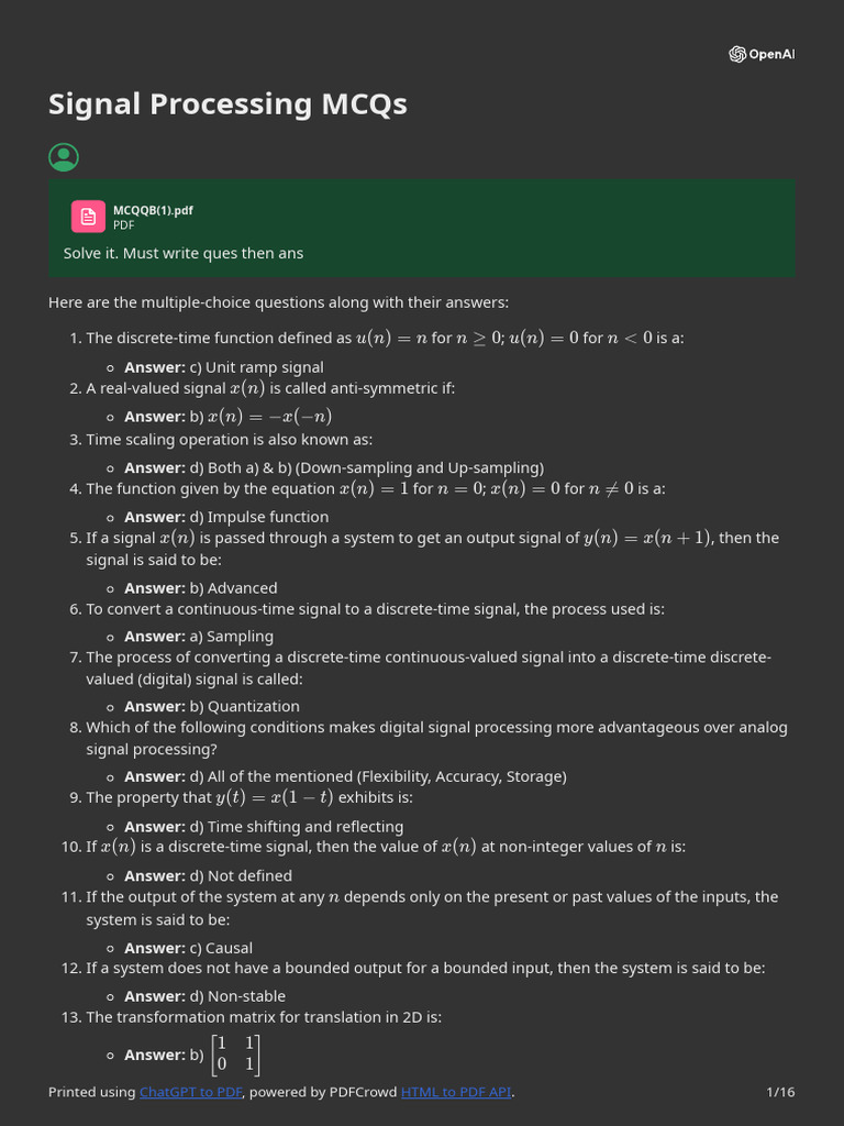 Signal Processing MCQs | PDF | Standardized Tests | Tests