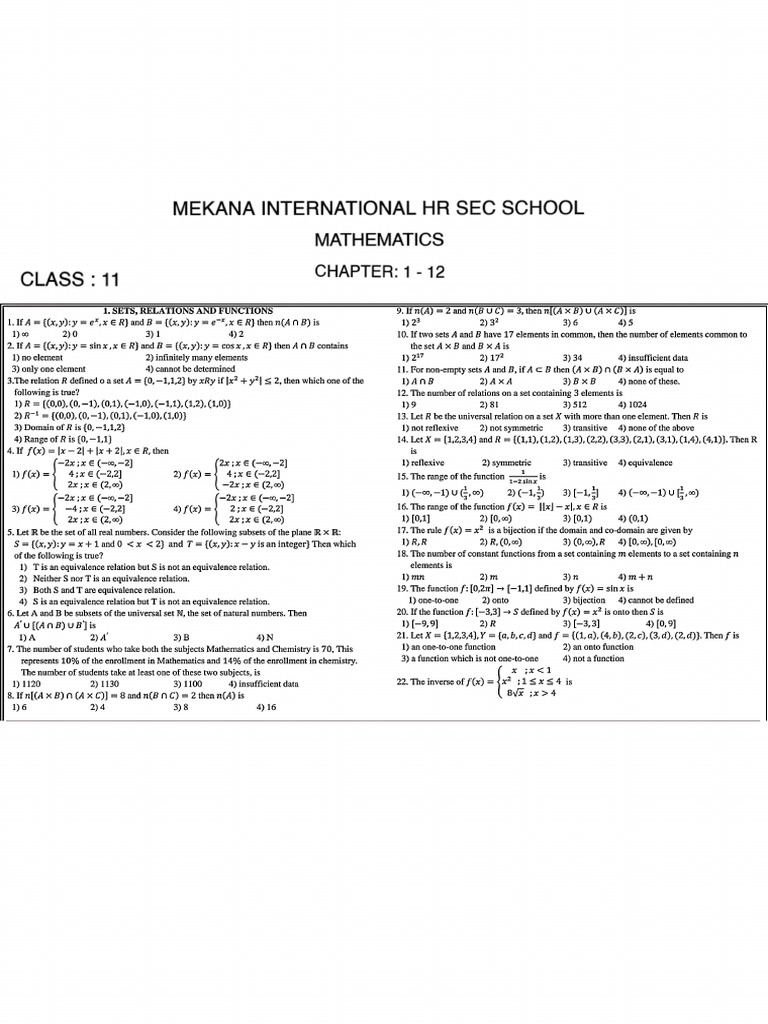 Year 11 Math Problem Set | PDF | Teaching Methods & Materials