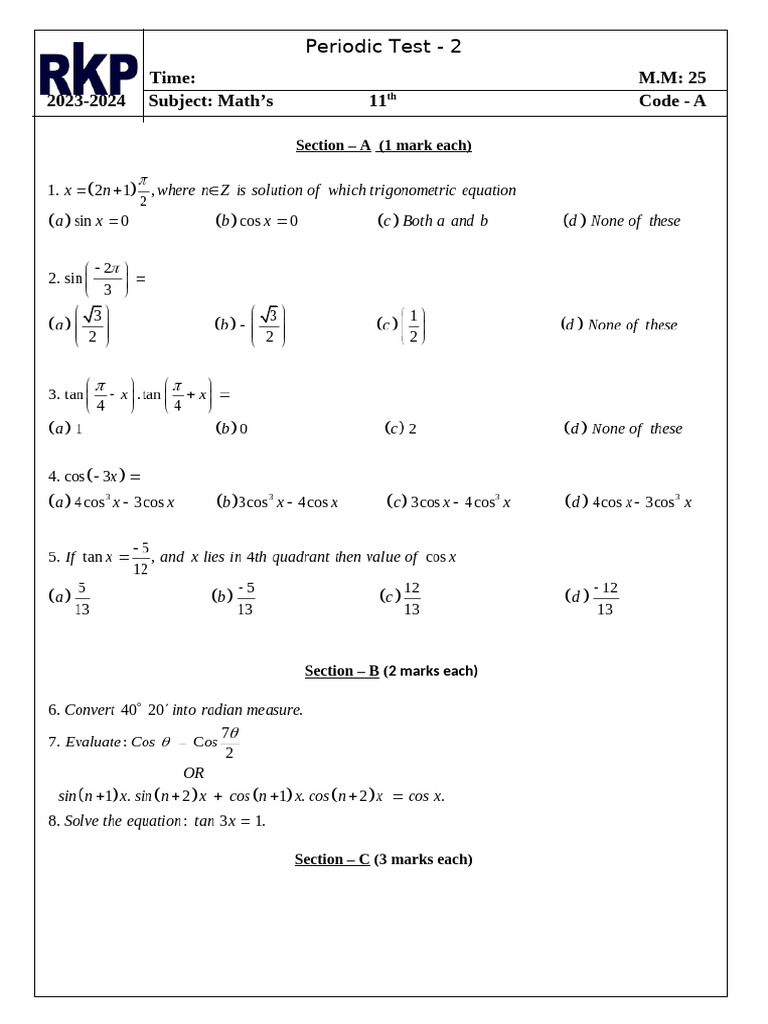 Grade 11 Mathematics: Trigonometric Equations & Solutions Memo - Studocu