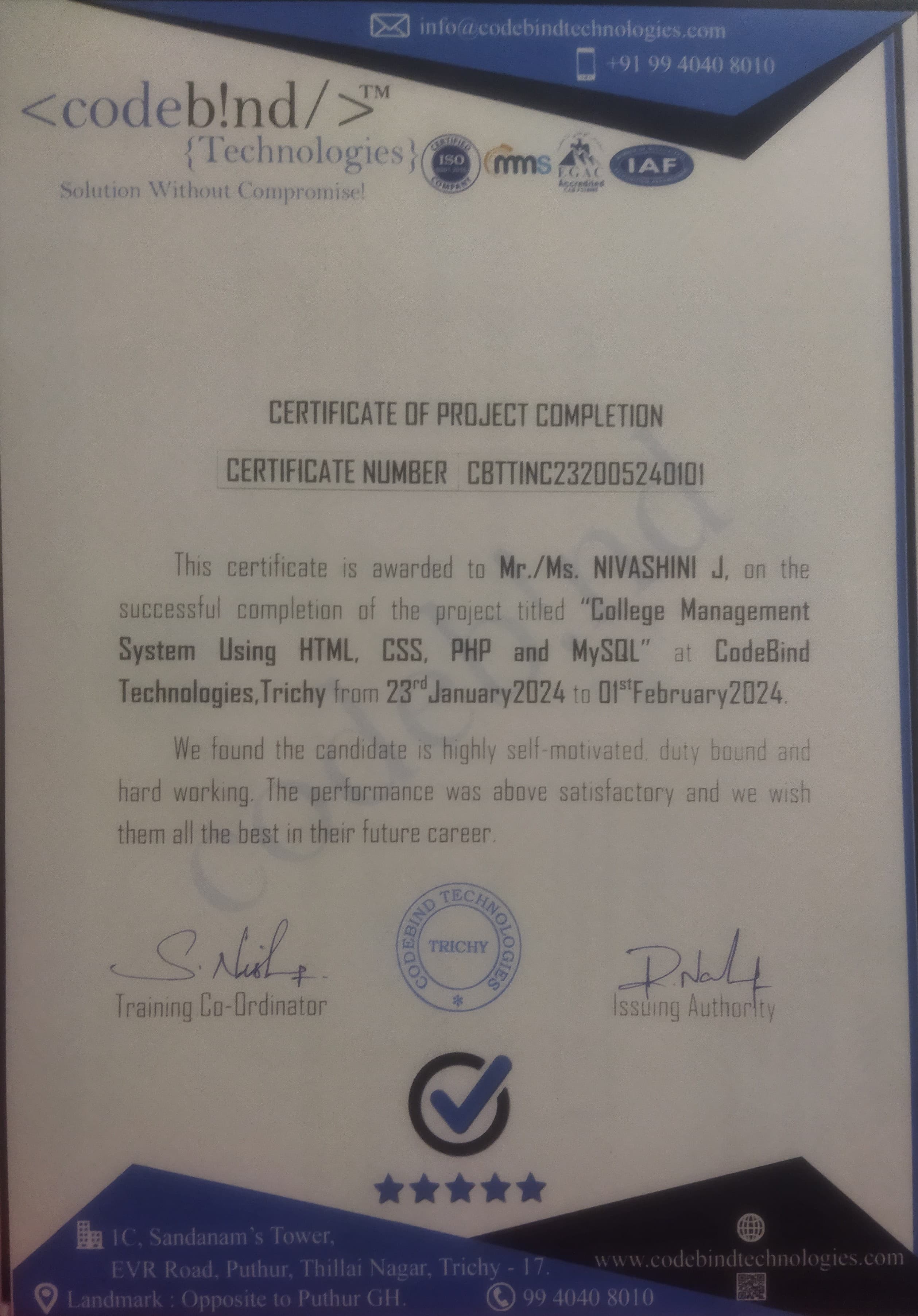 successfully completed web development course in codeBind technology ...