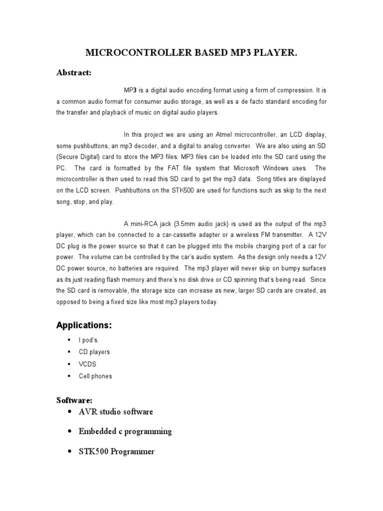 Microcontroller Based Mp3 Player.: Abstract | PDF | Codec | Consumer ...